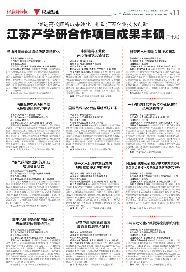 江苏科技报在2024年第74期报道了买球体育官网姚佳程博士主持的江苏省产学研合作项目《新型污水处理剂关键技术研发》。